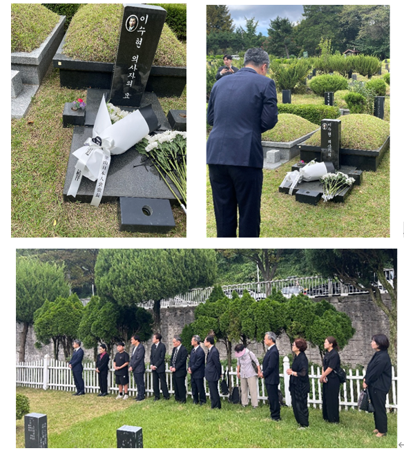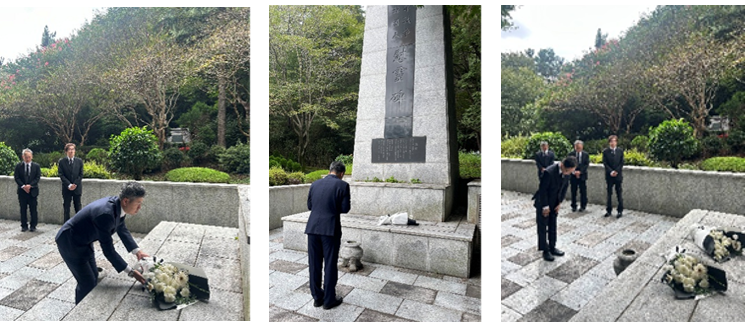 参拝後には、太平洋戦争犠牲者慰霊碑および義人イ・スヒョン氏の墓所に金井会長が献花を行い、参加者全員で黙祷を捧げました。